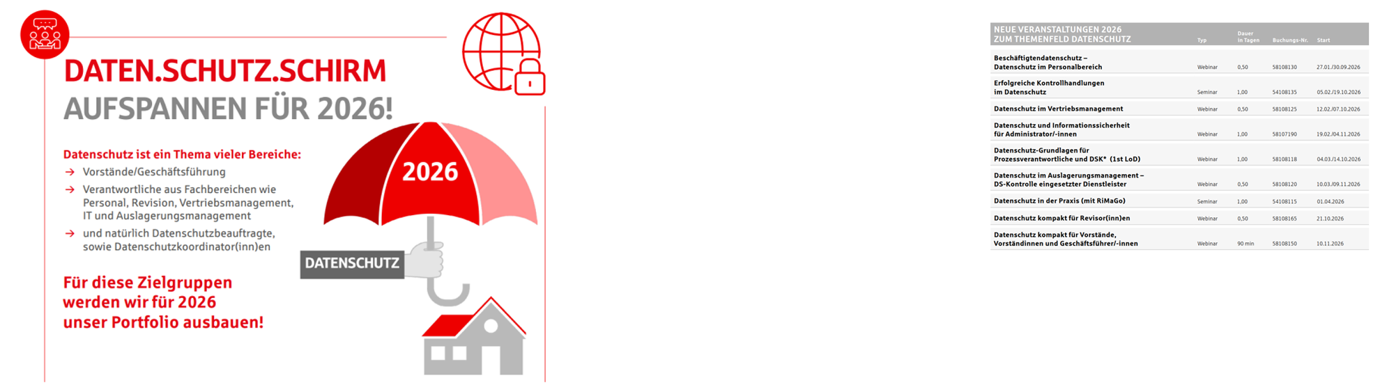 | Datenschutz kompakt für Vorstände, Vorständinnen und Geschäftsführer/-innen | 10.11.2026 (10:00-11:30 Uhr) |