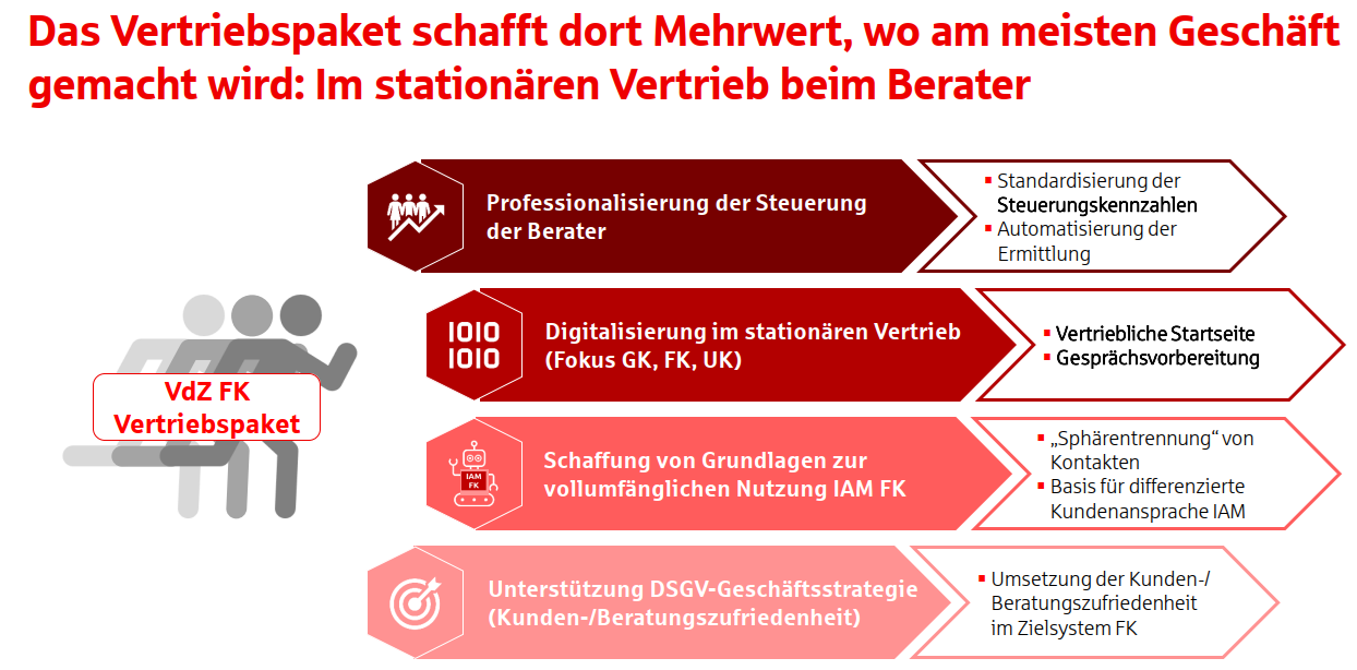 Die Finanz Informatik hat unter dem Namen VdZ FK – Vertriebspaket drei eng miteinander verzahnte OSP_neo Anwendungen entwickelt: